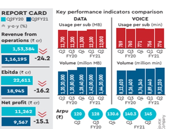 RIL’s GRMs for the quarter were at a hefty premium to the average Singapore complex and came in at $5.705/barrel compared with $9.4 per barrel in Q2FY20. The Ebitda for the September quarter fell by 21.4% sequentially, primarily due to higher crude cost. The performance was also partially affected by planned turnaround during the quarter, RIL said in a release. Reliance BP Mobility operated 1,406 fuel retail outlets during the quarter.