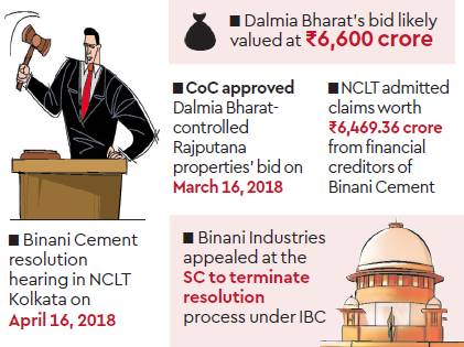 Binani Industries had reached an in-principle understanding with UltraTech Cement last month that would allow the latter to buy Binani Industries’ 98.43% stake in Binani Cement for Rs 7,266 crore provided the resolution process under the IBC was terminated. The Kolkata bench of the NCLT had placed the responsibility of considering an out-of-tribunal settlement on the lenders of Binani Cement, and had asked them to arrive at a decision by April 9. The bankers, however, had said they do not have the power to approve the out-of-tribunal settlement. Creditors to Binani Cement include State Bank of India, IDBI Bank, Canara Bank, Bank of Baroda, Bank of India, Edelweiss Asset Reconstruction Company. A plea made by UltraTech Cement before the Kolkata bench of the NCLT — that the CoC ought to have considered its revised offer — will have to be resolved before a final decision can be reached on this case.
