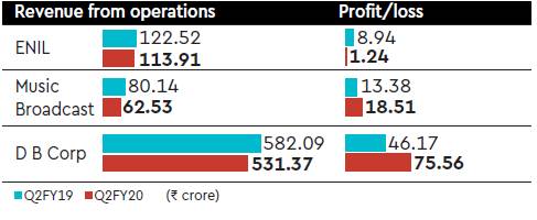 DB Corp posted revenues of Rs 531.37 crore, which reflected a slight y-o-y drop. Radio advertising revenue for the quarter stood at Rs 31.6 crore, the company said, down from Rs 37.7 crore in Q2FY19.