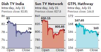 Reliance Jio’s announcement of launching 4G VoLTE feature phones has the potential to hurt the prospects of the direct to home (DTH) and cable TV industry also, though not to the extent it would impact the incumbent telecom operators. Analysts said DTH and cable TV operators would get hit to an extent since Jio has wide content in its portfolio that the feature phone users can access and view on their television sets. In fact, the announcement of the feature phone saw shares of broadcasting and cable TV companies slumping up to 6% on the BSE on Friday. Reliance Industries CMD Mukesh Ambani on Friday said many JioPhone users might like to view their favourite content such as live TV, movies or education on their television sets. He said that this is especially true in many remote parts of the country where even cable TV and high speed internet have not reached. “Our young Jio engineers have created an innovation to help them — a special and affordable ‘JioPhone TV cable’ that connects JioPhone with any TV, not just a smart TV, so that all JioPhone users can enjoy viewing on the big screen of their existing television sets,” he said.