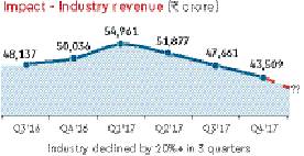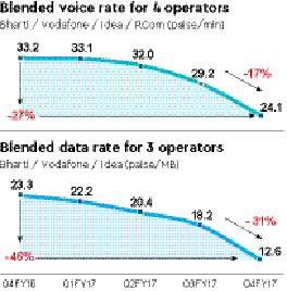 Highlighting that checking predatory pricing should be the immediate agenda of the government, Idea Cellular put data in perspective. For instance, between Q4FY16 to Q4FY17 voice rates of operators fell by between 27% and 35%. Voice revenues declined by between 9.6% and 32.5% and the data rate by between 47% and 50%. What changed between Q4FY16 and Q4FY17 was the entry of Jio with its free services after the second quarter of FY17.