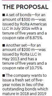 Rolta India has sought a restructuring of its debt obligations from bond holders. A set of bonds — for an amount of $300 million — was issued by Rolta Americas LLC in July 2014 with a tenure of five years and a coupon rate of 8.875%. Another set — for an amount of $200 million — was issued by Rolta LLC in May 2013 and has a tenure of five years and a coupon rate of 10.75%. The company wants to issue a fresh set of five year notes in lieu of the outstanding bonds which mature in 2018 and 2019. On June 20, 2016, S&P global ratings lowered its long-term corporate credit rating on Rolta India to default. It has proposed to the ad hoc committee — comprising bond holders — that the existing senior notes be exchanged for new five-year notes with a principal amount of $500 million and with no accrued interest.