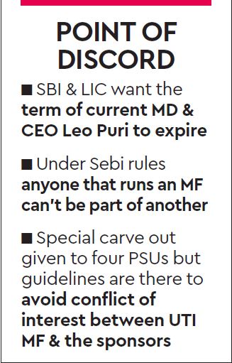 Both LIC and SBI have written to the board of UTI Asset Management Company (AMC), asking it to allow the term of Leo Puri, the current MD and CEO, to expire and to appoint a non-executive chairman from among the “independent directors”. The so-called independent directors are nominees of the PSU financial institutions that, together, own 73% of UTI’s shares. At present, there are two nominees each from LIC and SBI and one from PNB.