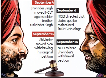 “I have applied to withdraw the petition before NCLT that is coming up for hearing,” Shivinder told PTI. “A mediation process has been kicked off and if it does not work, I have the option of refiling it,” he added. Shivinder’s application withdrawing his original petition from NCLT states that pursuant to the filing of the original petition, his mother requested that both the brothers engage in mediation led by family elders respected by both with a view to settling inter se issue between them.
