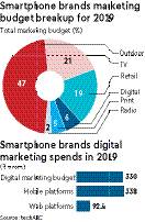 A report by techARC revealed that smartphone brands would cumulatively spend more than `330 crore in 2019 on digital marketing in India — 20% growth since last year. While marketing over mobile platforms will consume 72% of the budget, the remaining will be spent on promotional activities on web platform, it added.