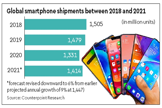 Counterpoint Research has revised downwards its smartphone shipment numbers for 2021 calendar year to 6% at 1.4 billion units. It had earlier projected an annual growth of 9%. The smartphone industry was set for a strong rebound this year after Covid had hit the market hard in 2020.