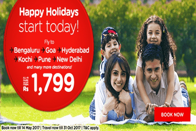 The AirAsia offer is available for selected Indian cities namely, Bengaluru, Goa, Hyderabad, Pune, New Delhi and a few more. The offer can be availed from now to May 14. The travel period under the offer is until October 31.