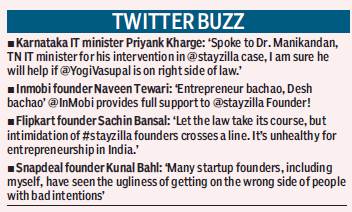 The action against Vasupal received widespread condemnation from the entrepreneur community who expressed their support for Stayzilla, an 11-year-old firm backed by Matrix Partners and Nexus Venture Partners. Stayzilla had suspended its operations in February after a sustained struggle. Stayzilla, once seen as a leading player in the home-stay aggregator space, had received $34 million in venture capital. Karnataka IT minister Priyank Kharge tweeted on Wednesday morning that he himself will speak to his his counterpart in Tamil Nadu. Later, he communicated his concern on the matter. “Spoke to Dr Manikandan, IT minister for his intervention in Stayzilla case, I am sure he will help if Yogi Vasupal is on the right side of law.”