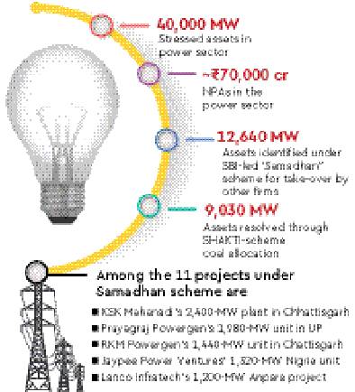 Under the Samadhan scheme, the identified power projects would be assigned to rating agencies to determine their “sustainable debt” levels. Thereafter, banks would put 51% equity of these projects up for auction to gauge the industry’s interest for such projects, while the remaining would be held back by banks and existing promoters so that they get a chance to redeem their stakes when demand revives.