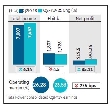 Tata Power’s consolidated operating profit for the quarter ended September 30, 2018 fell 4.5% year-on-year to Rs 1,725 crore while margins dropped 275 basis points, as the company continued to face headwinds on account of higher fuel cost and power purchase costs.