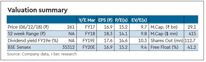 Given higher other income due to proceeds from Patran sale and wind power performance we have revised earnings upward for TEECL. However, EPC segment earnings will remain under stress, impacting overall valuations. Hence, we maintain Reduce with a revised target price of Rs 231 (EPC business is valued 20x FY20e earnings at Rs 189 per share).