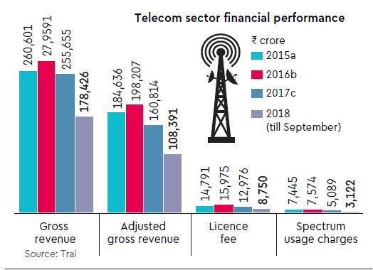 COAI said on an annualised basis, it is expected that the revenue of the industry will be `1,45,000 crore for FY19, lower than the revenues prevalent in FY13-14. The industry Ebitda has correspondingly dropped by 30% between quarter ended June 2016 and quarter ended September 2018, and stands at around 20%. The industry debt is estimated at Rs 7.7 lakh crore and about 50% is on account of spectrum alone. Further, a significant capex is required and being incurred (over Rs 40,000 crore per annum) for 4G coverage and capacity given exponential traffic growth.