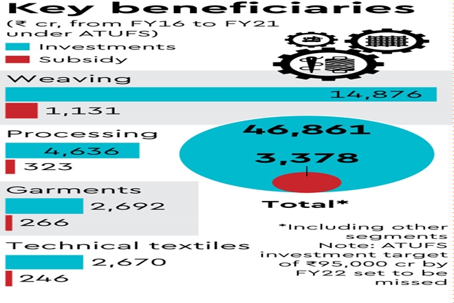 Industry sources said the ATUFS is set to miss the investment target by a wide margin, as cash-strapped, highly-leveraged companies in the labour-intensive sector had cut down on both technology upgrade and capacity expansion, even before the pandemic struck. However, given the current economic resurgence in key export markets like the US and the EU, large investments could flow in if the government plans meaningful interventions, they added.