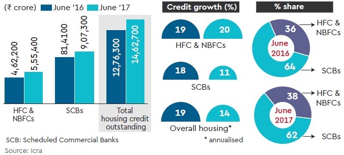 Thanks to a sharp focus on affordable housing, loans by housing finance companies (HFCs) today are matching the disbursals by banks. Disbursements by the non-banking players between July 2016 and June, 2017, have been on par with those by banks in the mortgage segment. Data from ratings agency Icra shows banks lent close to Rs 93,000 crore in the 12-month period, as much as HFCs and NBFCs lent together. Home loan portfolios of banks have been growing at around 11-13%—the growth slipped to 11.4% y-o-y in October from 12.8% in September—while at HFCs these are clocking a growth of 19-20%, albeit on a smaller base. At the end of June 2017, the housing-loan portfolio of HFCs and NBFCs stood at Rs 5.55 lakh crore while that of banks was Rs 9.07 lakh crore. Clearly, the focus on the affordable segment which is seeing fairly good momentum thanks to the government’s credit-linked subsidy scheme (CLSS), has boosted the loan books of HFCs. Krishnan Sitaraman, senior director at Crisil confirmed that CLSS has helped stoke demand in the affordable housing category, which HFCs have been quick to take advantage of. “In the sub-Rs 25 lakh loan category, the effective interest rate on the EMI is now in many areas lower than the rental yield. So you actually pay less on a loan than if you were staying in rented accommodation. That has also created its own demand,” Sitaraman said.