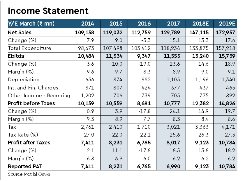 Weaknesses on which it is working Management acknowledges that loyalty programmes can be used better. This is an area in which the company is reportedly investing a lot. Knowledge of customers can be leveraged better for cross-selling. Financials According to management, RoCE in FY18 will be similar to FY17, even if margins are lower in the quest for growth. The company is looking to increase asset turns to offset margin impact.