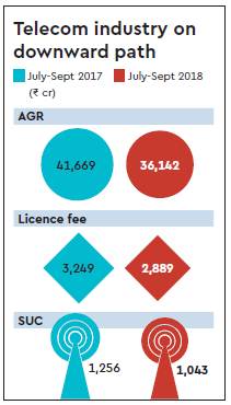 Adjusted gross revenue (AGR) of the industry was down 13.26% to Rs 36,142 crore for the reported period against Rs 41,669 crore during the same period last year. As the levies are paid on AGR, the downward trend is also witnessed in government proceeds. Licence fee was down by 11.08% to Rs 2,889 crore for the reported period compared with Rs 3,249 crore last year.