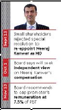 In September, small shareholders had defeated a special resolution proposing Neeraj Kanwar’s re-appointment for five years and fixing his remuneration.
