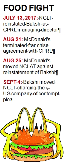 Bakshi had filed a contempt petition alleging that by terminating the licence McDonald’s has violated the NCLT order dated July 13 that reinstated him as managing director of Connaught Plaza Restaurant (the 50:50 joint venture between Bakshi and McDonald’s India that runs 169 outlets in the north and east of the country) and also refrained McDonald’s Corporation from interfering in the functioning of CPRL.