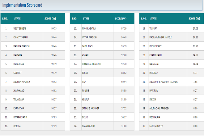 Since the index is being updated on a real-time basis and so the ranking changes more frequently than expected. It is noteworthy that Telangana and Andhra Pradesh, both, had also bagged the top position in the past. States that have made to the top 10 of the list are Haryana with 99.46%, Rajasthan with 99.19%, Gujarat with 99.19%, Andhra Pradesh with 98.92%, Jharkhand with 98.92%, Telangana with 98.37%, and Karnataka with 98.37%.