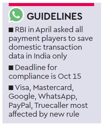 The RBI had, on April 5, put out a circular stating that all payment system operators in the country must move to a system of storing transaction data within India by October 15. So far, WhatsApp is the only major overseas payments player to have confirmed its intent to comply with the circular.