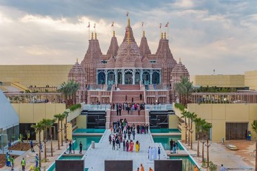– This upcoming Hindu temple marks a significant milestone as the region’s inaugural stone temple and is poised to be the largest in West Asia. Media reports suggest that with a construction budget of Rs 700 crore, it will showcase a meticulously designed façade, featuring seven spires representing each Emirate of the country.