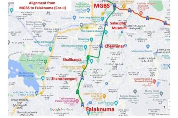 According to a release issued by HMRL, the 5.5 km long metro stretch in Old City is from MGBS to Falaknuma via Darulshifa junction – Purani Haveli – Ettebar Chowk – Alijakotla – Mir Momin Daira – Haribowli – Shalibanda – Shamsheergunj and Aliabad.