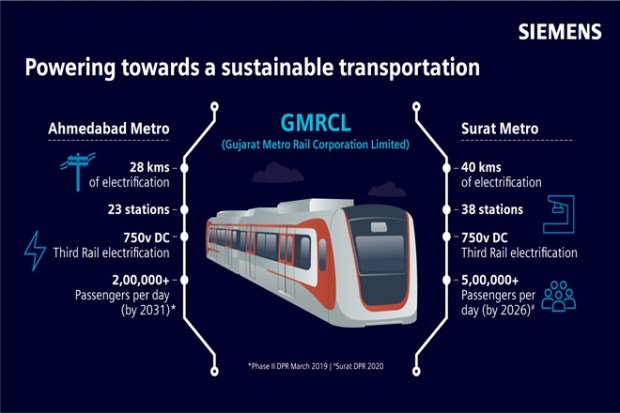 Siemens consortium has received orders from Gujarat Metro Rail Corporation Limited (GMRCL) for advanced rail electrification technologies. The move will provide a step towards creating safer, greener, and smarter transport solutions for sustainable cities.