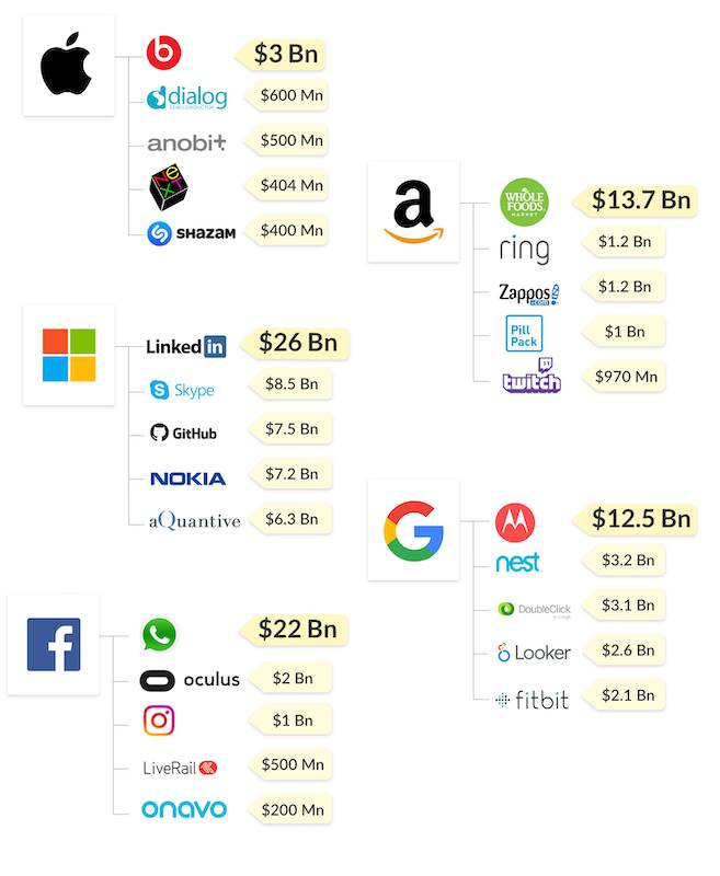 Between them, these companies bought 27 companies in the first half of 2020. That adds to the ammunition that antitrust lawyers and lawmakers have to claim that tech companies are muzzling competition. With just half the year through, the number of tech buyouts are as many as the deals sealed during 2015.