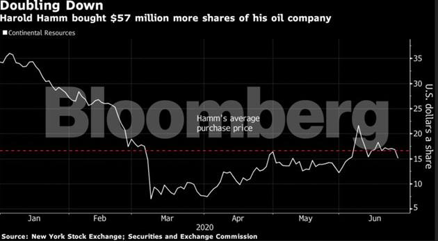 Bloomberg: Billionaire wildcatter Harold Hamm bought more shares in the shale drilling company he controls as oil prices recover from their historic plunge.