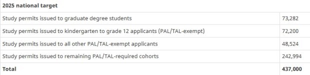 Of the 437,000 study permits expected to be issued in 2025, 120,724 are expected to come from PAL/TAL-exempt students, while 316,267 are expected to come from PAL/TAL-required groups.