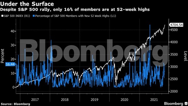 Bloomberg: The record-setting rally in the S&P 500 is leaving many of its members behind.