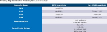 The Department of Labor (DOL) has released its most recent report on PERM and prevailing wage determination (PWD) processing delays.