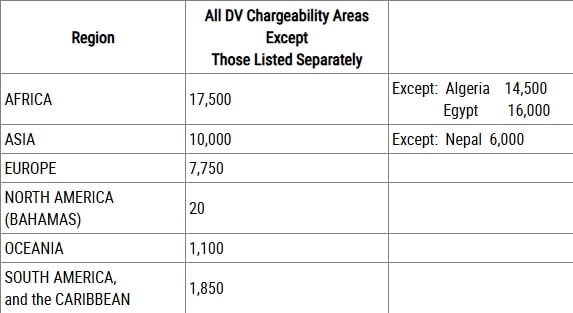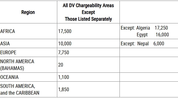 For January, immigrant numbers in the DV category are available to qualified DV-2026 applicants chargeable to all regions/eligible countries as follows. When an allocation cut-off number is shown, visas are available only for applicants with DV regional lottery rank numbers BELOW the specified allocation cut-off number: