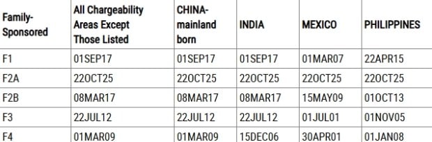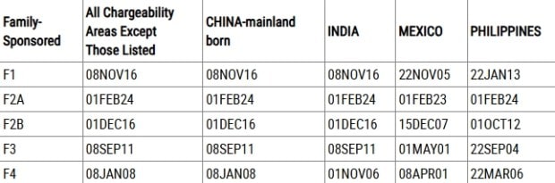 B. DATES FOR FILING FAMILY-SPONSORED VISA APPLICATIONS