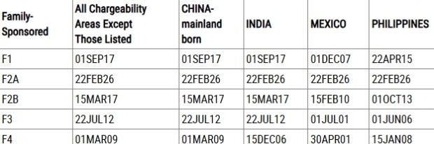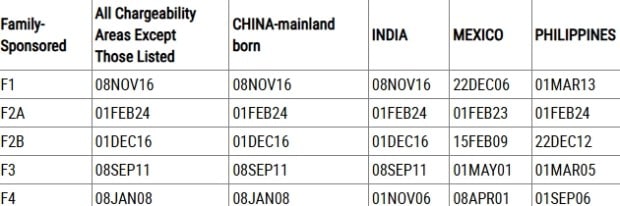 B. DATES FOR FILING FAMILY-SPONSORED VISA APPLICATIONS