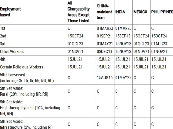 B. DATES FOR FILING OF EMPLOYMENT-BASED VISA APPLICATIONS