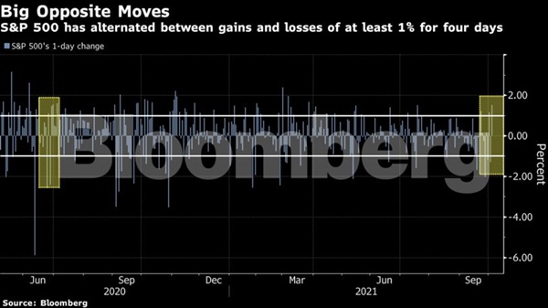Bloomberg: Pick a direction, and don’t go with it. That’s the story in stocks of late, with the S&P 500 alternating between gains and losses of at least 1% for four straight sessions — the longest stretch since June 2020. It’s the same in fixed income, with 10-year Treasury yields swinging wildly around 1.5%.