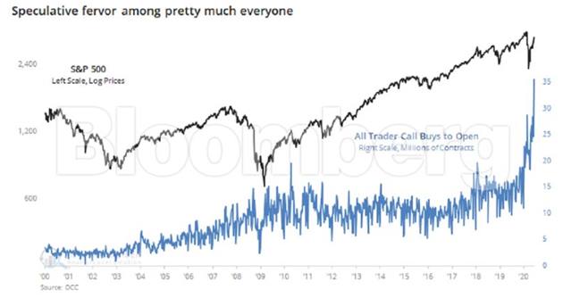 Bloomberg: Speculative excess has surged to the highest in at least 20 years among U.S. options traders and that’s a negative for stocks over the medium term, according to Sundial Capital Research Inc.