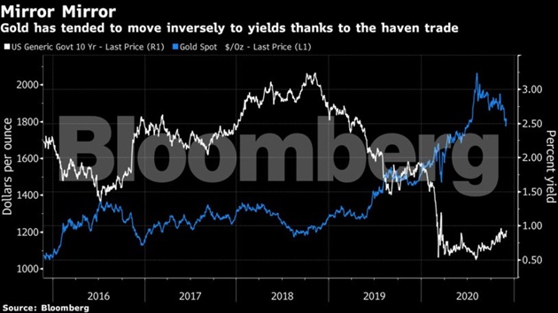 If a rise in Treasury yields to 1% or higher “is due to a reflation trade, then inflation breakevens — gold and gold miners, commodities, will do well usually,” according to Societe Generale SA strategist Sophie Huynh.