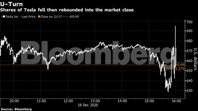 Bloomberg: Traders spent most of the year pushing up shares of Tesla Inc. in anticipation of surging demand from index funds when it entered the S&P 500. That trade had its climax Friday, as frantic purchases by passive managers drove the shares almost 5% higher just as markets closed.