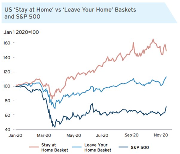 What transpires for investors is to have the right set of stocks int heir portfolio for the long term. Citibank in its 2021 annual outlook takes a look at the ‘Stay at Home’ Vs ‘Leave Your Home’ investment portfolio. 2020 showed the dispersion clearly when stay-at-home stocks rallied while ‘Cyclical’ stocks remained subdued in their performance.