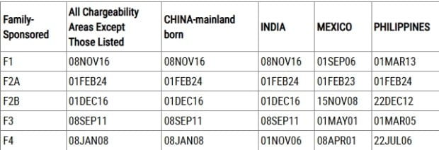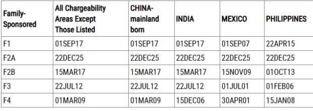 DATES FOR FILING FAMILY-SPONSORED VISA APPLICATIONS