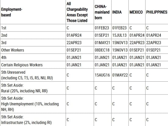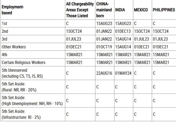 DATES FOR FILING OF EMPLOYMENT-BASED VISA APPLICATIONS