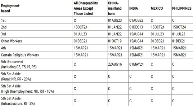 DATES FOR FILING OF EMPLOYMENT-BASED VISA APPLICATIONS