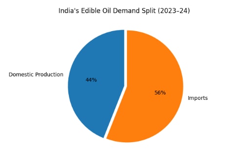 In 2023-24 alone, 15.66 million tonnes of edible oil were imported, accounting for roughly 56% of total demand.