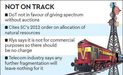 The railways want 10 MHz spectrum for their internal communications but the DoT feels that it won’t be prudent to give the same for free as it is worth Rs 65,680 crore (according to Trai’s recommended reserve price). DoT is also citing the Supreme Court ruling of 2012 which mandates that natural resources should be allocated only through auctions.