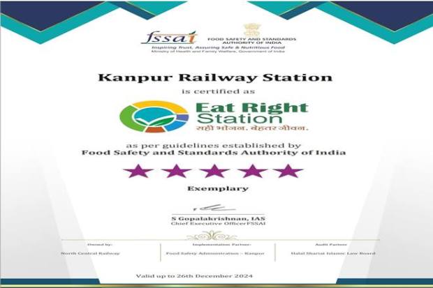 The Kanpur Central railway station is one of the major and busiest railway stations on the New Delhi (NDLS) and Howrah (HWH) route. The certificate has been issued by the Food Safety and Standards Authority of India (FSSAI) with a five-star rating which indicates exemplary efforts by stations to ensure safe and hygienic food is available to passengers.