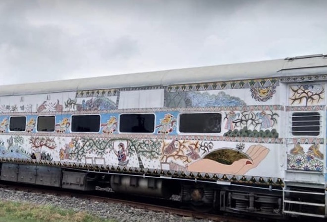 The idea to decorate Indian Railways’ trains with the traditional Mithila art form started from Madhubani railway station in Bihar. It was reported that the trend, which was widely appreciated was soon followed by other railway stations of Bihar like Patna Junction, Rajendra Nagar station and Danapur station. The station decoration initiative was launched at Madhubani railway station as a part of the beautification and cleanliness project of Indian Railways which also highlighted the skill of local Mithila artists. Last year, the Madhubani railway station in Bihar also won an award in a station beautification competition, which was organized at Rail Bhavan.