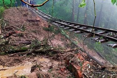 A massive landslide, which occurred near the idyllic Summerhill region of Himachal Pradesh’s capital city, swept away a 50-metre bridge leaving a portion of the track hanging in the air.