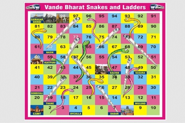 The authorities have devised the game in such a way that it looks like the route of the blue and white color train. In Mumbai- Sainagar Shirdi and Mumbai-Solapur Vande Bharat Express, the board game will start at Chhatrapati Shivaji Maharaj Terminus (CSMT) and the ladders are replaced with Vande Bharat trains. If you land on the board where the train does not halts, you will go down in snakes and if you land at the halt will jump through the Vande Bharat (ladder) leapfrogging to higher rows.
